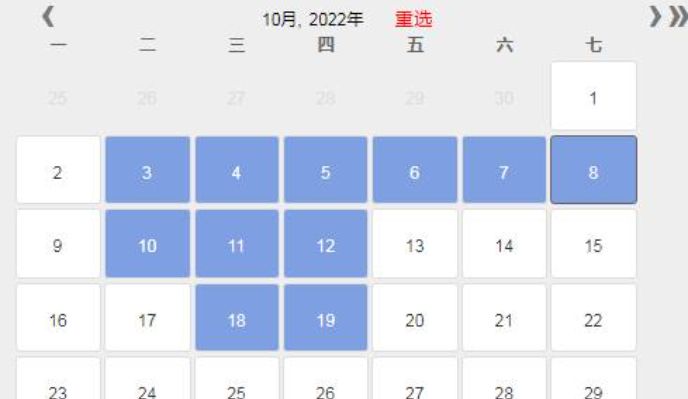 移动端js时间选择多功能插件;支持 单选,多选,时间范围,指定时间选择,不可选时间