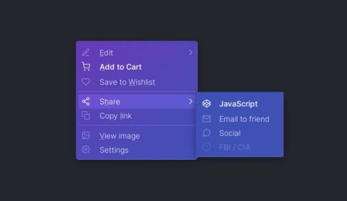 覆盖浏览器右键上下文菜单。 有子菜单、图标、浏览器边缘检测和极简JS。