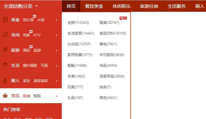 使用jquery制作的带商品分类侧边栏列表的商城导航菜单