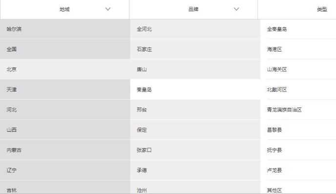 jquery仿app产品三级联动筛选列表,有三列选择