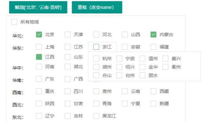 基于layui的中国省市复选框组件