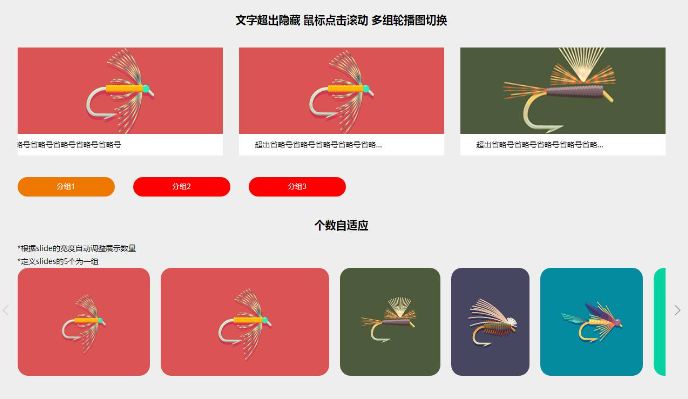 jQuery多组轮播图,文字超出隐藏,鼠标点击滚动,多组轮播图切换