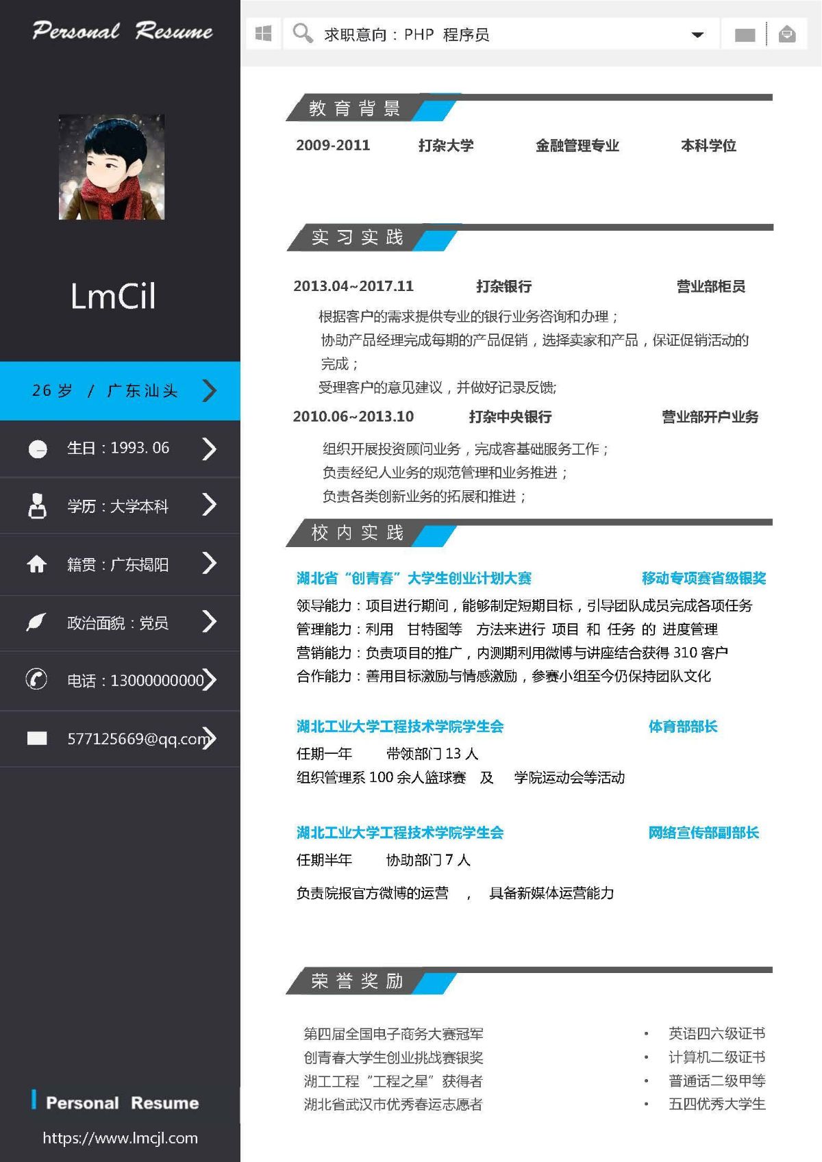 蓝黑颜色的简历模板